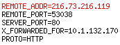 REMOTE_ADDR=216.73.216.119 REMOTE_PORT=31895 SERVER_PORT=4080 PROTO=http HTTP_X_FORWARDED_FOR=10.1.132.170 |